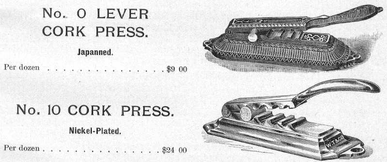 water and then squeezed into the proper shape for insertion in bottles with a tool called a "cork press" - see the illustration