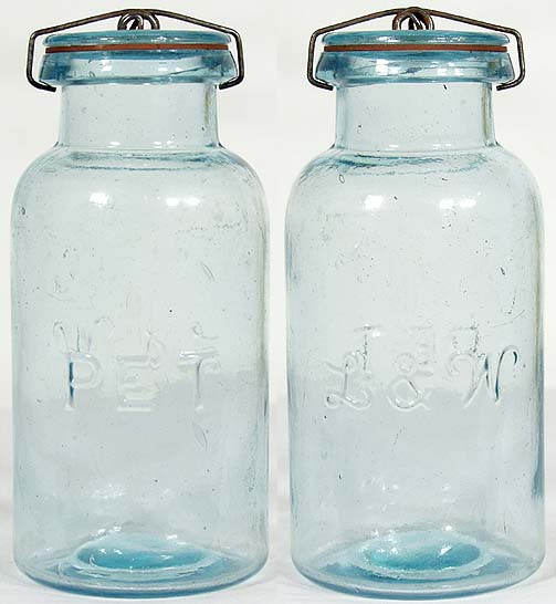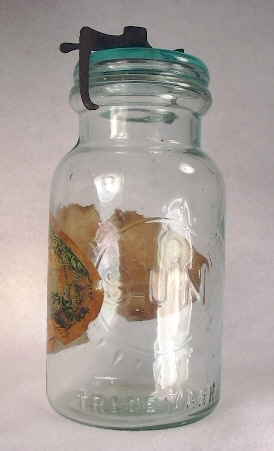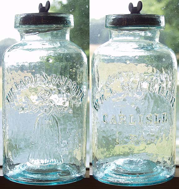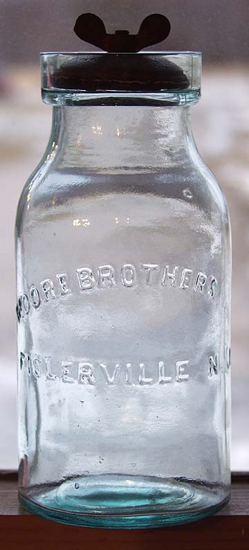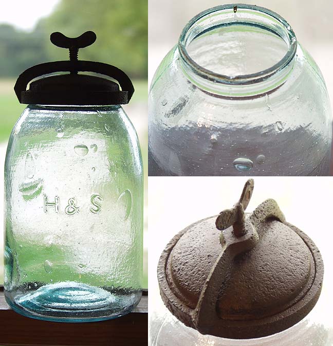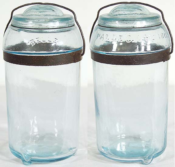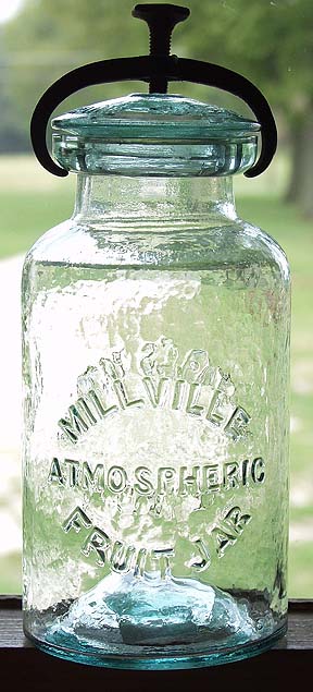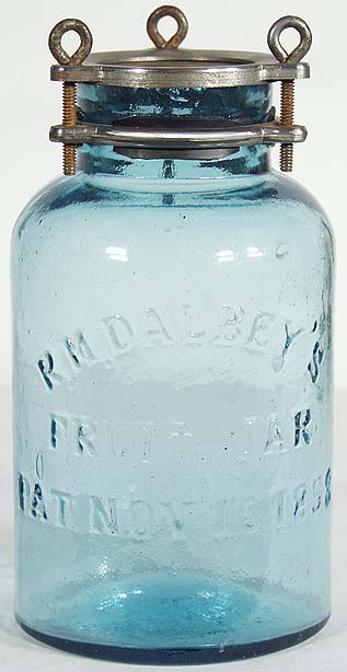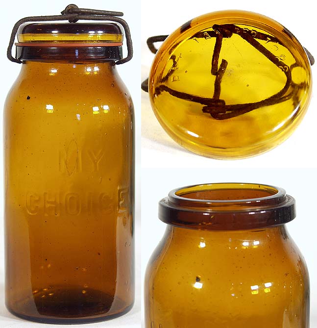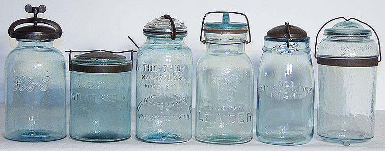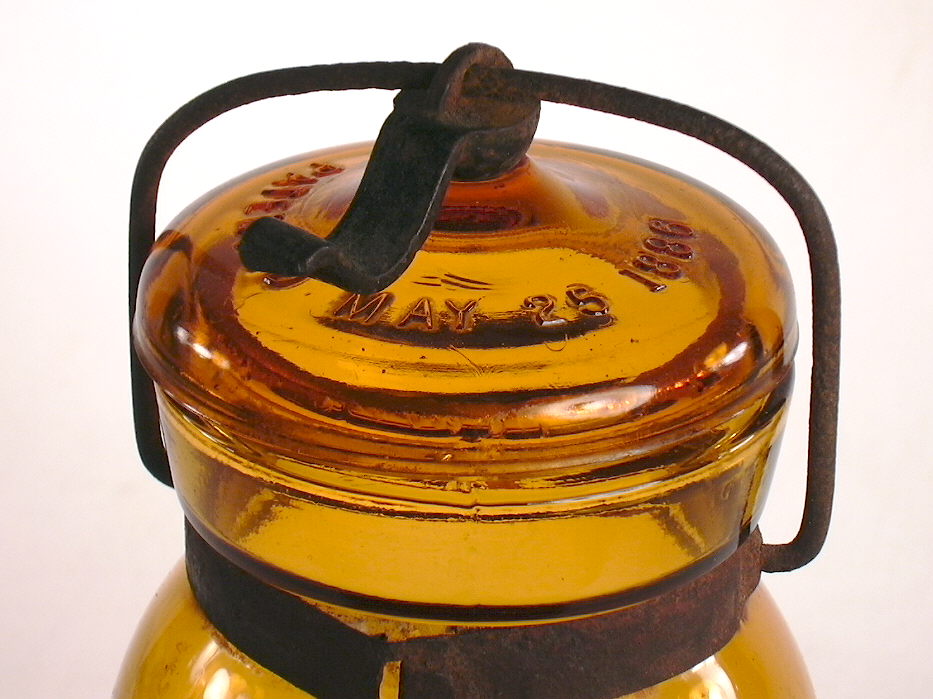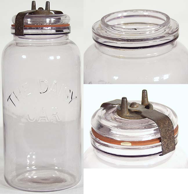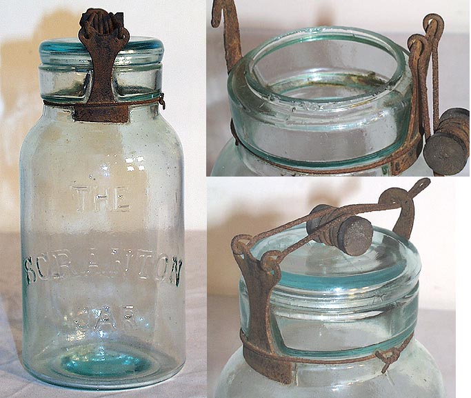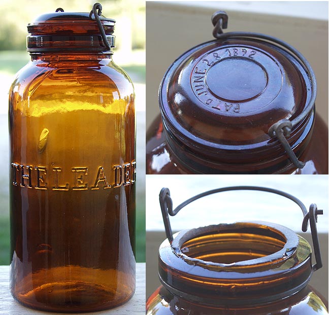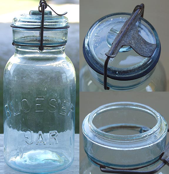 The use of bottles - and the need for varied closures to seal them - arose with an expanding city based market and even then for just a few types of bottled goods - primarily liquor, wine, and patent medicines in the early 19th century. As cities and relative affluence spread, the market and demand for bottled goods increased rapidly. At the same time, the expansion of the ever growing population into the farming regions of the Midwest created a need for methods and equipment to preserve foods. Thus, the need for canning jars. With the expansion of these demands came the need for suitable containers all of which had to be properly sealed to function. Parallel with the creativity of bottle & jar makers in satisfying this demand for glass containers, the creative juices of closure designers were unleashed. The thousands of different closure designs patented during the 19th century are a testament to that creativity, though most probably never made it into widespread manufacture (Lief 1965; Toulouse 1969a). This variety is illustrated later on this page with links to several dozen canning jars exhibiting a kaleidoscope of closure types most of which saw very limited popularity and use.