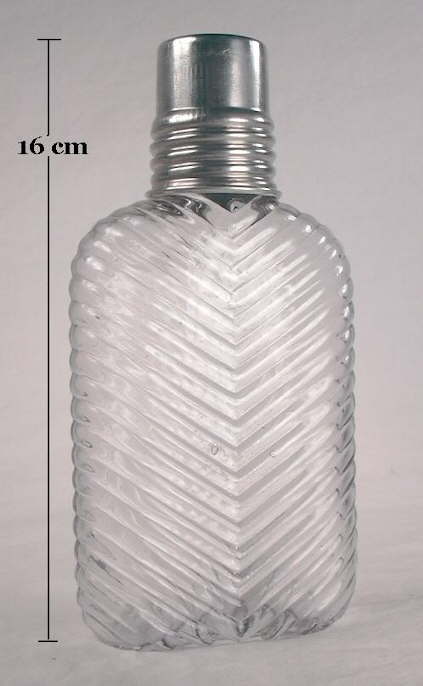 Based on listings in glass makers catalogs and empirical observations, mouth-blown, double screw cap flasks were made from the 1890s until National Prohibition after 1919. Some machine-made versions were likely made in the mid to late 1910s, though most machine-made double screw cap flasks were made after repeal of Prohibition in 1934. This design continues to be somewhat popular and versions are still being made today.
