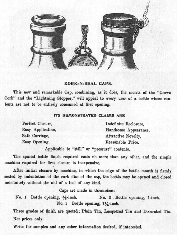 There have been many kinds of closures for bottles, ever since glass and pottery have been used for container materials. Roman and Grecian containers used straw, rags, leather, and the like, luted (sealed) with clay, resins, natural waxes , and other binders. Some of those newly discovered had their closures intact. I well remember the potato that closed the spout of the coal-oil can, and the pottery jug of something or other that grandfather kept hidden in the barn, stoppered with a corn cob.