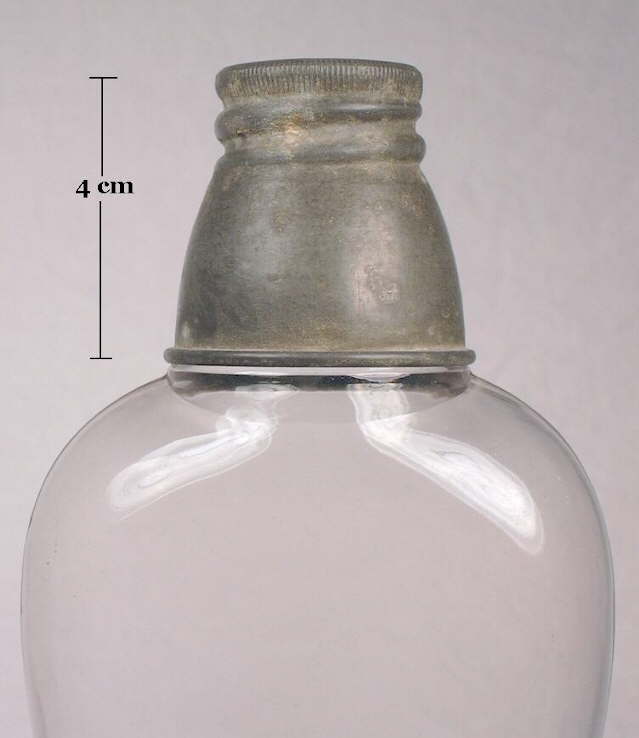 The majority of liquor flasks produced during the period covered by this website (1800 to 1950s) used either cork (generally pre-1920s), externally threaded screw caps (generally post-1920s but not uncommon as early as the 1890s), or much less frequently some of the closures already noted above. There were, however, a couple other closure types that were utilized on liquor flasks but are rarely if ever seen on other types of bottles. A couple of these unusual closures are covered below.