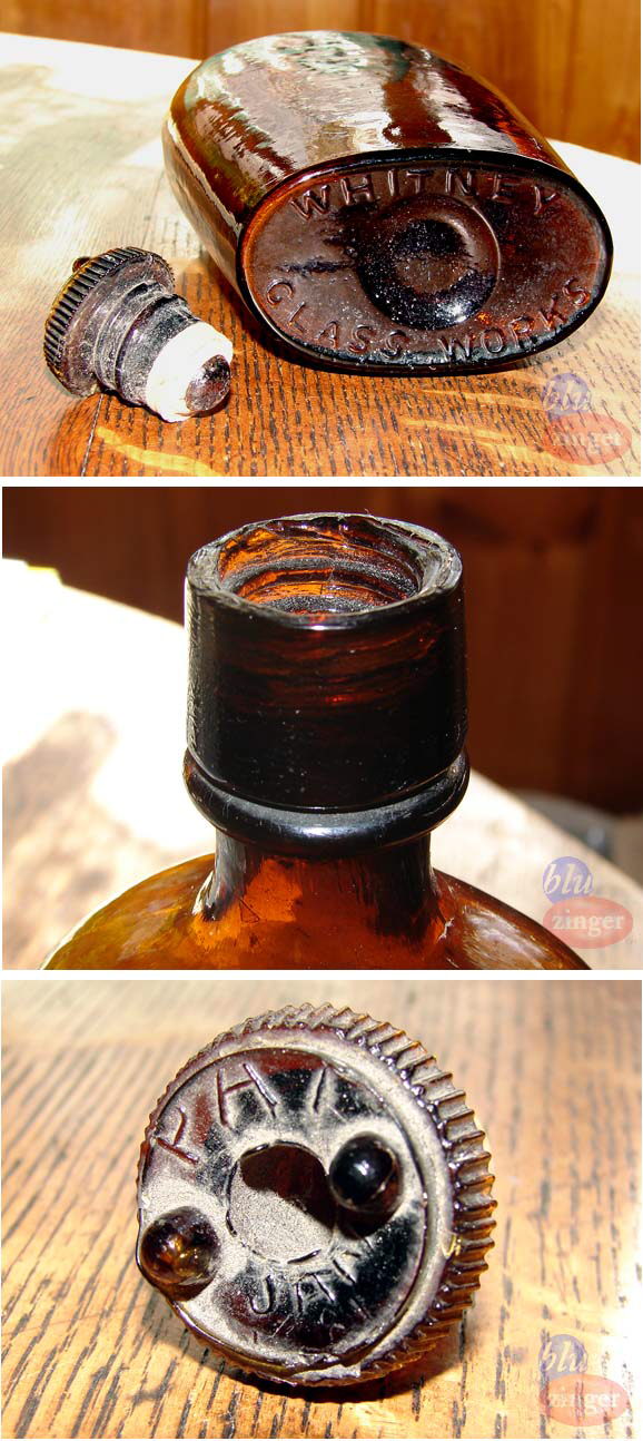 The point of this discussion here is to point out that there are often pitfalls in assuming that a given finish type has only one closure possibility when in fact most closures would fit several different finish conformations (and vice versa). It also points out the fact that there were an immense number of different closure types used during the period covered by this website, many of which are little known today. Indeed, the author of this website made the simple assumption that this bottle took a capseat because it seemed the most likely possibility, when in fact, additional research indicated it most likely did not. The quest for knowledge never ends...