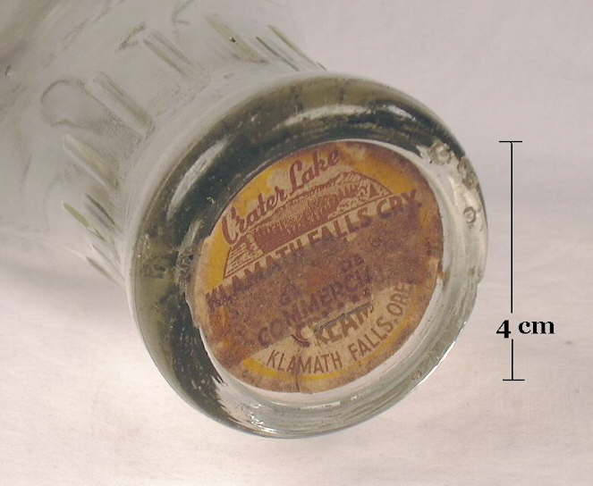 The pictured capseat finish at the top of this section is on a Cloverdale Dairy Co. (Ely, Ruth & McGill, NV.) pint milk bottle that dates between 1925 and 1930 based on a makers mark for the Pacific Coast Glass Company (Toulouse 1971). This bottle is the typical "Common Sense" milk bottle shape which dominated the market from the early 20th century until the mid to late 1940s when square milk bottle came into fashion and popularity although the "Common Sense" style continued to be made into at least the 1960s (Owens-Illinois 1960; Lockhart pers. comm. 2003). This Nevada milk bottle is discussed more as a dating example on the Bottle Dating - Examples of Dating Historic Bottles page. There was apparently some use of this type finish - and presumably the same closure - on a few other types of bottles. Most notable were some food bottles produced during the first third of the 20th century. The image to the left is of a relatively small (6 3/4" tall) mouth-blown pickle bottle from the early 20th century that has a tooled capseat accepting finish, though with a bit different overall conformation to the finish than the typical milk bottle. (Click sweet pickle bottle to see the entire bottle.) Whether bottles with this type finish actually used a capseat closure can not always be ascertained today - unless found with the original closure in place - as it may have used a cork or other closure instead. For example, the pictured pickle bottle appears to have a capseat accepting finish. The base is embossed with K. G. B. Co. which indicates manufacture by the Kearns-Gorsuch Bottle Co. (Zanesville, OH.) who specialized in "Packers' Ware." Kearns-Gorsuch is known to have produced a proprietary closure for food bottles that they called the "Spring Top" closure. It was designed to fit the type of finish shown on this bottle which otherwise looks like a capseat. This closure was patented in 1899 and consisted of a round glass lid with a rubber seal that fit into the "capseat" ledge, all of which was held in place by a spring clip that hooked under the lower edge of the finish (Kearns-Gorsuch Bottle Co. 1916). Click spring top closure to view the pages from the 1916 Kearns-Gorsuch catalog that illustrate this closure. The point of this discussion here is to point out that there are often pitfalls in assuming that a given finish type has only one closure possibility when in fact most closures would fit several different finish conformations (and vice versa). It also points out the fact that there were an immense number of different closure types used during the period covered by this website, many of which are little known today. Indeed, the author of this website made the simple assumption that this bottle took a capseat because it seemed the most likely possibility, when in fact, additional research later indicated it most likely did not. |