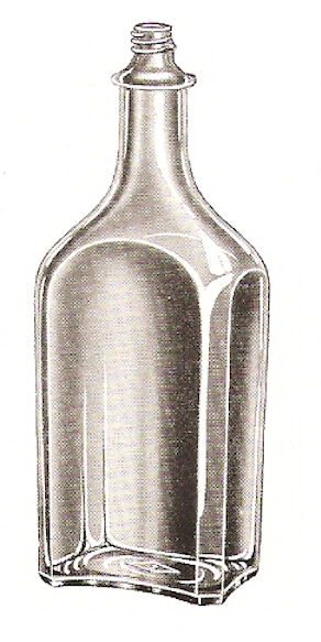 glass with a slightly different design than the later bottle pictured.