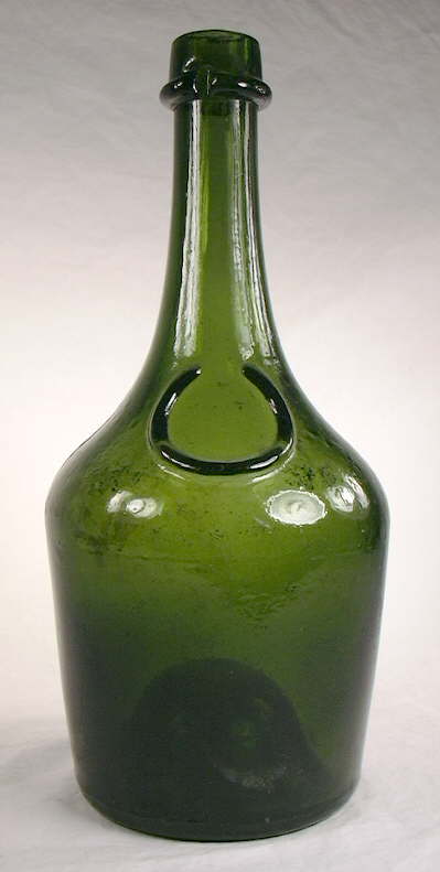 The champagne style bottle pictured to the right has a flaring string finish (click image to enlarge) and is known to date from 1811, as it was found on the wreck of an English ship which sank late that year. (Photo courtesy of Charles Cooper, Maritime Archaeology Program, University of Southern Denmark, Esbjerg.) Variations of this style finish were commonly used on European-made bottles dating from the mid 17th century through the first third of the 19th century. However, this finish is very uncommon on American produced bottles within the time frames covered on this website and will be little referenced. (For more information on early bottles - typically of English manufacture - that most frequently utilized this type finish consult the publication entitled Cylindrical English Wine & Beer Bottles 1735-1850 by Olive Jones (1986). In particular, see the Finishes and Necks section on pages 43-71. This entire book is now available as a pdf file on the Society for Historical Archaeology website at this link: http://www.sha.org/documents/Parks_Canada/Cylindrical English Wine and Beer Bottles - English.pdf )
