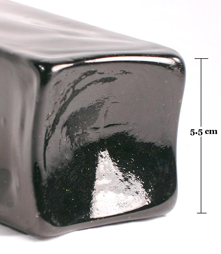 molten glass then applied and fused to the base of the bottle. A glass tipped pontil rod made