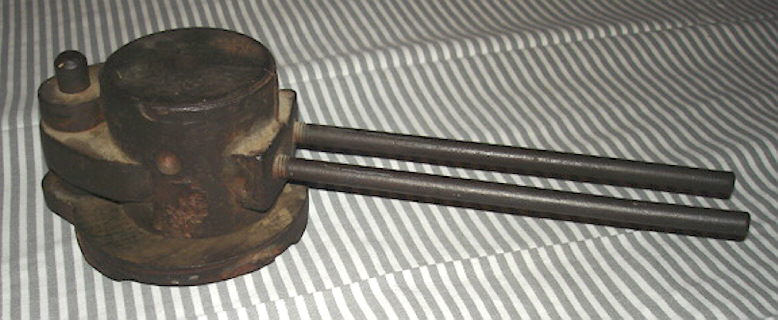 The following description of this process is from an 1865 patent (U. S. Patent #51,058) for an "Improved Clamping-Punty" - a patent for one of many improved grasping devices which replaced the pontil rod and were a much quicker method of holding a bottle by its base for finishing. It is the most succinct period description of the use of a pontil rod the author has run across. As discussed later, various non-fusing, bottle base grasping tools (snap or snap-case tools) were already in use by glassmakers in the U.S. by the early 1850s (if not a bit before) to some degree and were dominant by the time of this patent was granted in November 1865; a patent for the refinement of such tools not for the concept itself: