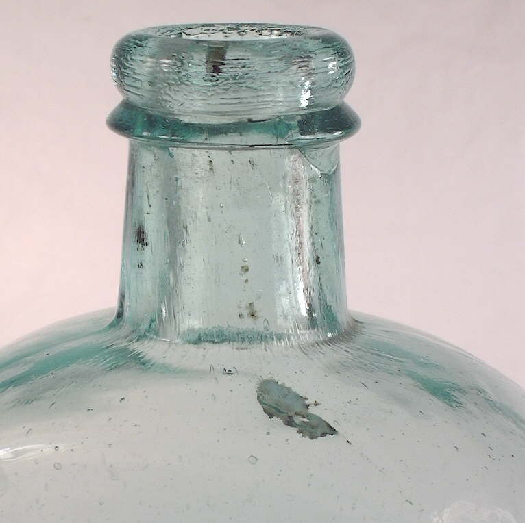 Applied Finish or Lip on an 1876-1886 (Wilson & Wilson 1968) Jesse Moore Bourbon cylinder fifth (San Francisco, CA.) exhibiting some of the typical excess glass flow just below the lower collar. |