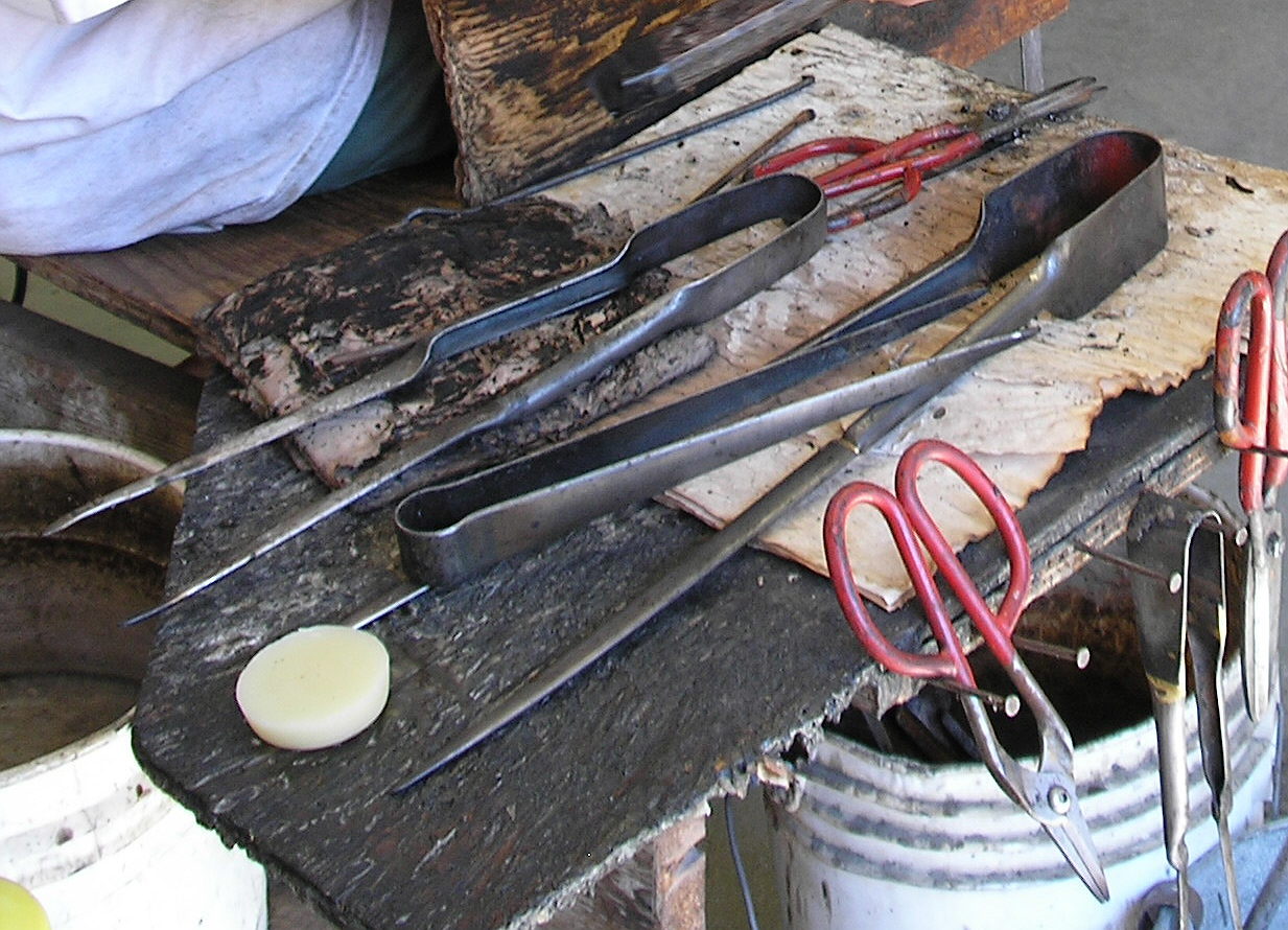 from the blowpipe is a sharp tap on the blowpipe with one of the glassmaker's tools.