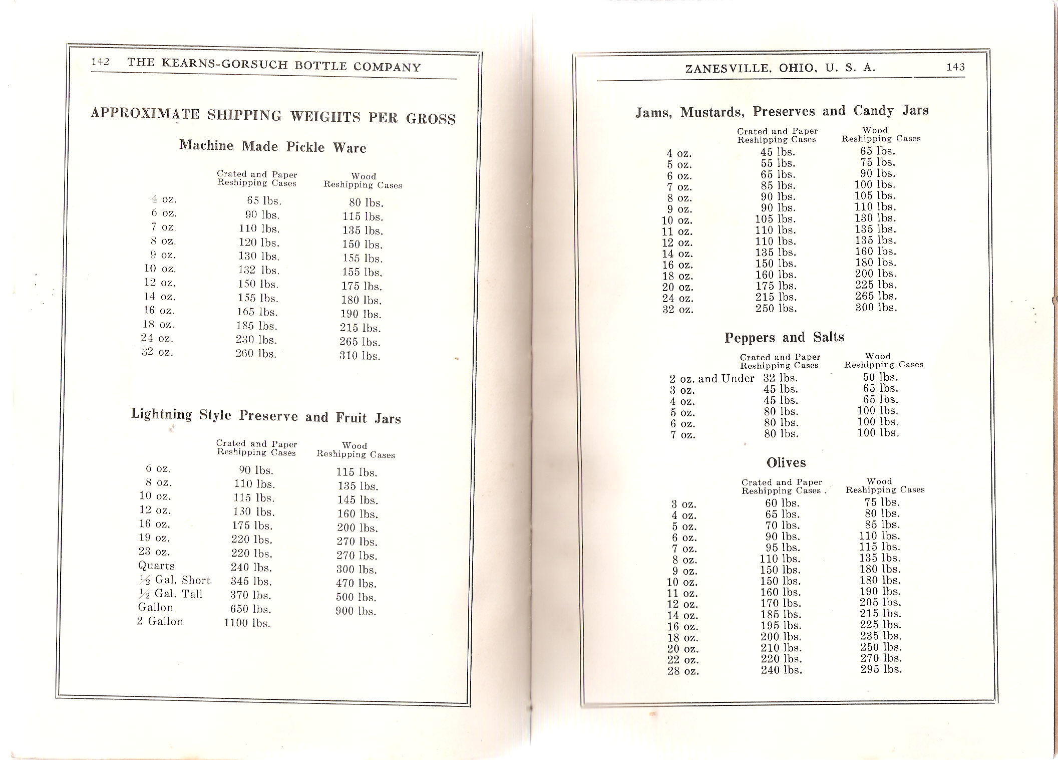 Approximate Shipping Weights of Bottles and Jars in Crates and Shipping Cases