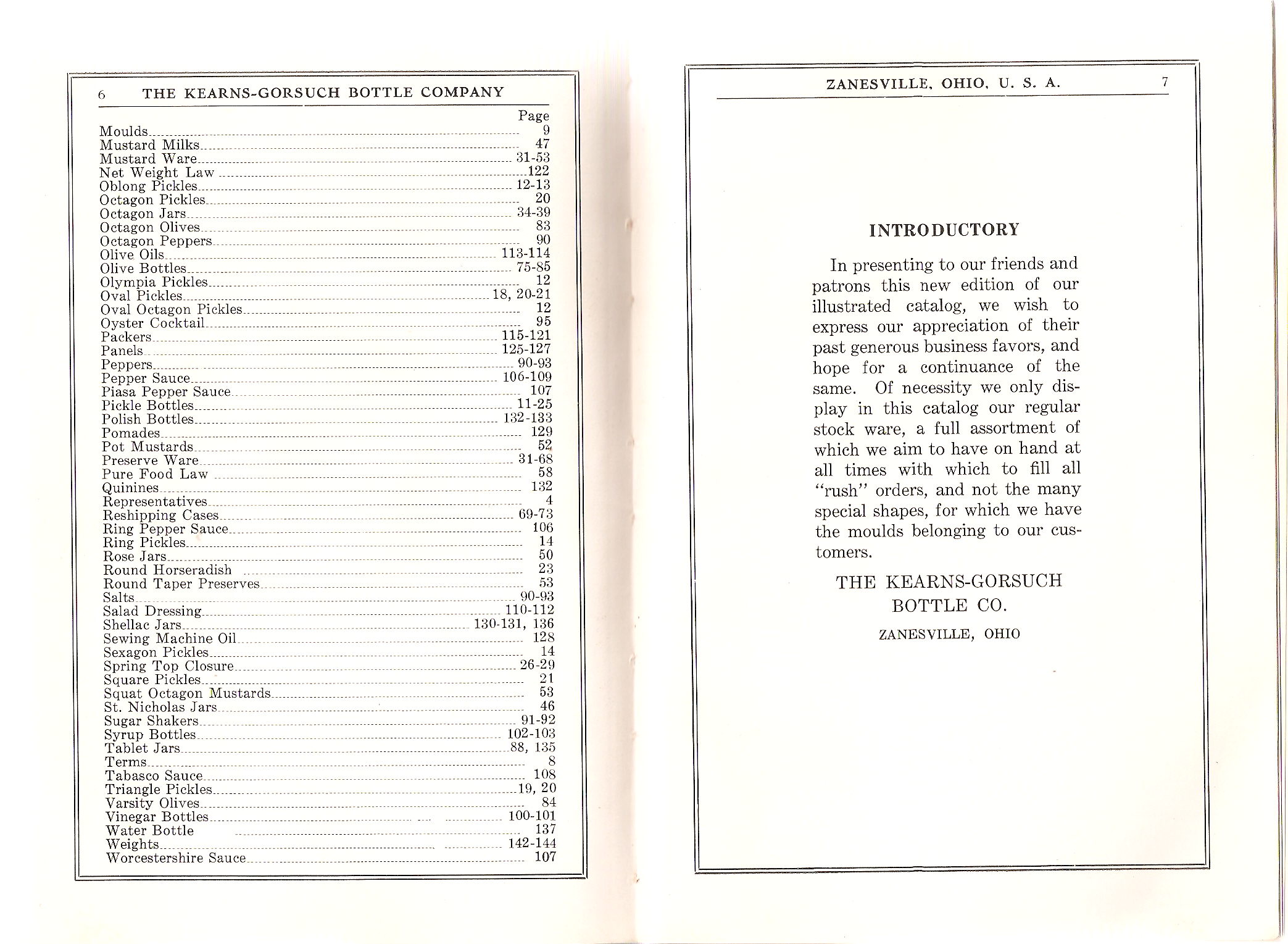 If a user wishes to search for a particular bottle type (or other catalog listing) in the catalogs "Index," these pages are linked immediately below. Determine the page number of the item you are interested in then find that page link further down this page and click on it. Just be aware that some of the proprietary names that the company (and all bottle making companies) used are not always intuitively clear as to what type of bottle it is referring to: