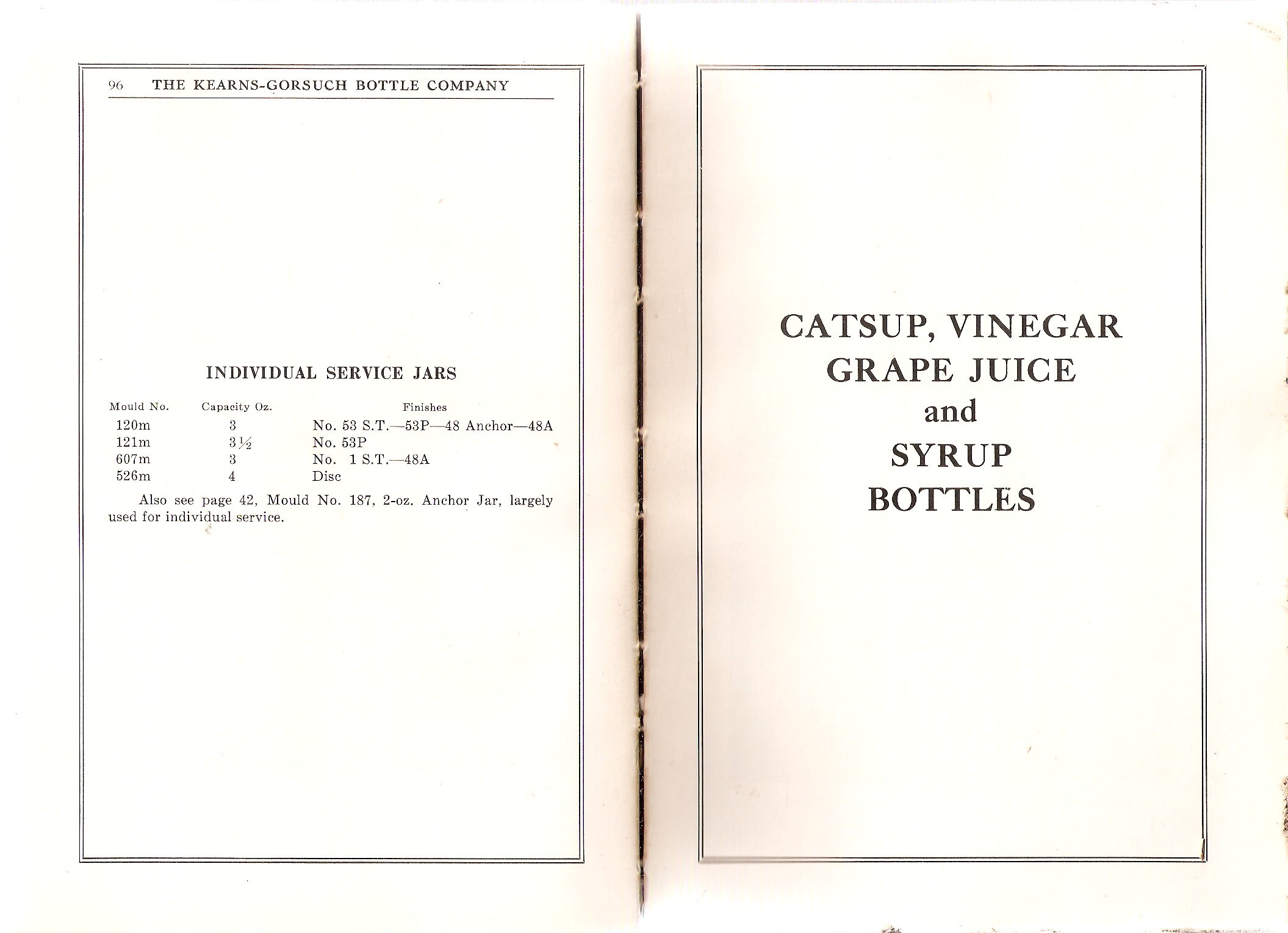 Individual Service Jars sizes & details / Catsup, Vinegar, Grape Juice & Syrup