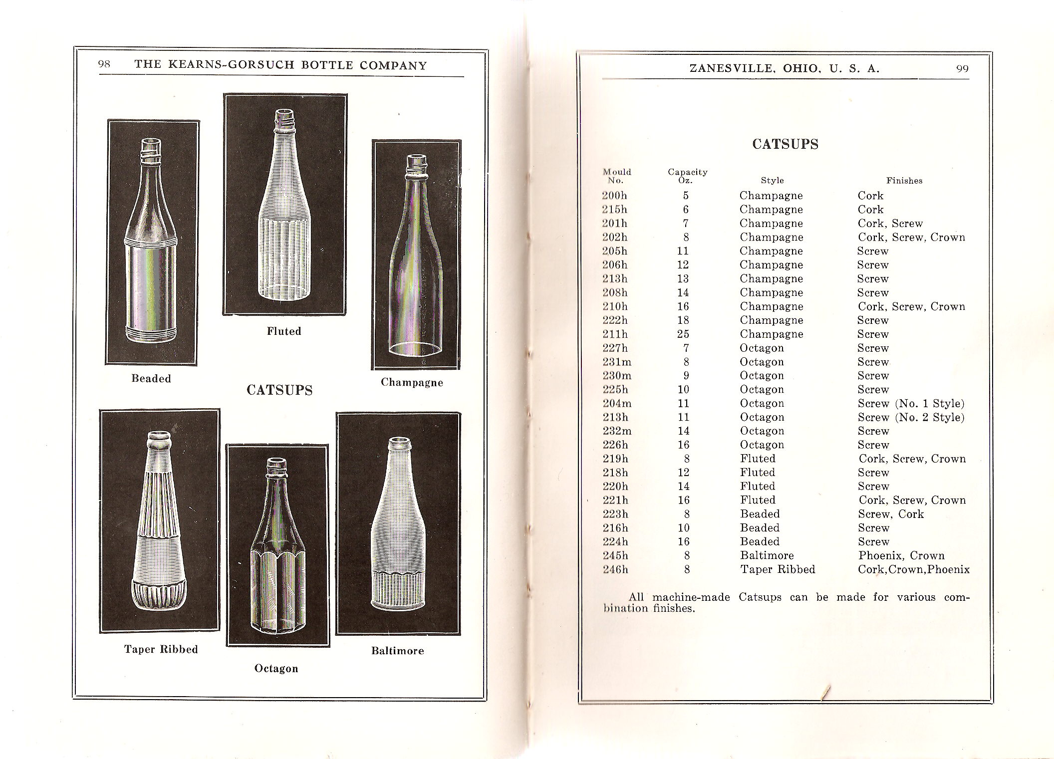 Pages 98-99: Catsups / styles, sizes & details information