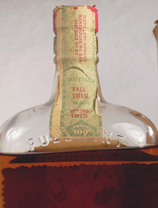 One notable exception to the above is that many earlier machine-made liquor/spirits and milk bottles had volume notations embossed in the glass (e.g., "QUART," "FULL QUART," "ONE PINT," etc.) or on the label as early as 1900-1905, though the large majority of machine-made bottles with capacity information date from the 1913 law or after. Click "FULL PINT" embossed flask to see an example of an relatively early (1919) machine-made liquor flask that is embossed with FULL PINT on the shoulder. Volume notation on liquor bottles was apparently a marketing issue and seems to be related to the rise of mail-order liquor which is briefly discussed under the Tall, slender bodied, straight neck spirits cylinders (late 19th & 20th century) section on the Liquor & Spirits Bottles page. The use of volume notations on earlier milk bottles was likely associated with the demands for more cleanliness, reliability, and predictability of the product once home delivery began to be popular in the early 1900s (though reportedly began in 1878). See the milk bottle section of the typology pages for more information.