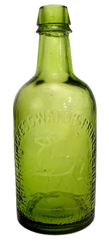 Soda/Mineral Water styles There were an assortment of other variably popular bottle styles used as containers for the sale of soda and mineral water - some more or less proprietary (Bitterquelle) and others generic shapes (siphon & apollinaris). The following assortment covers some of these bottles but is not remotely all embracing.