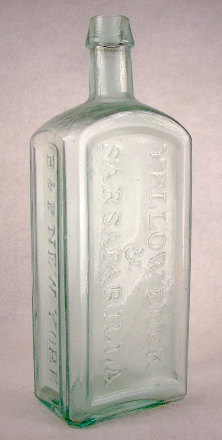 But from when does this bottle date? That is the other primary question most people have about a given bottle besides what it was used for. If this bottle is run through the questions on the Bottle Dating pages, one is able to narrow the manufacturing date of this bottle to between the mid-1860's and early 1880's based on key manufacturing based diagnostic features, i.e., lack of a pontil scar (Question #4), applied finish (Question #5 ), lack of mold air venting (Question #7), and a post-mold base type (Question #6).