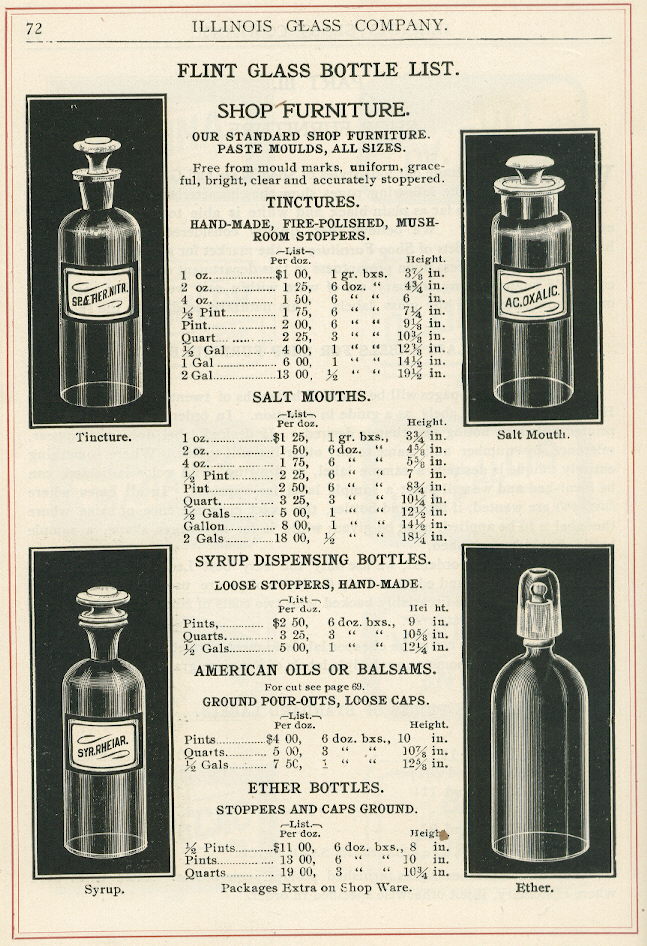 NOTE: Attached to this complex of pages is one that is an ongoing pictorial coverage of all types of bottles with their original labels. This page allows users to see specifically what many different shapes of bottles were used for as the original labels are still intact. Click Labeled bottles to move to that section of this page. |