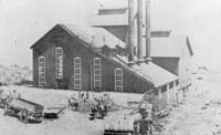 The Buena Vista Pump House, built in 1882 at New Almaden Quicksilver Mines, California. Photograph courtesy of the New Almaden Mining Museum, taken in the late 1880s.